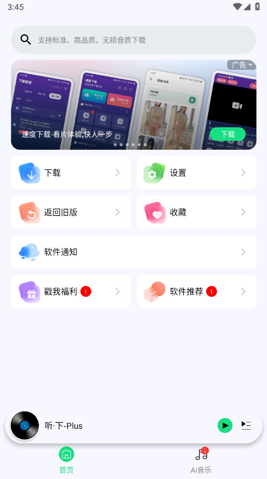 听下免费音乐软件是一款集成了多个平台音乐的APP,支持无损音乐下载,支持在线播放等功能。软件界面很美观,使用起来也比较方便,所有功能都免费的,值得使用。
